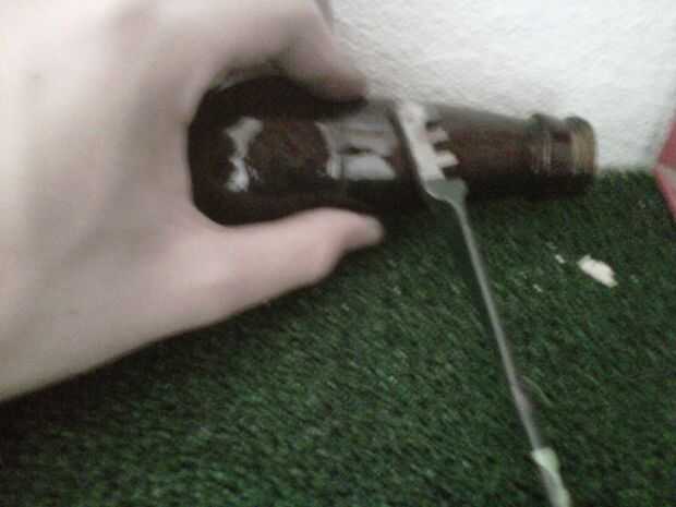 Bien así que primero tenemos que marcar el cuello por lo que podemos tomar de la botella. La técnica que utiliza para marcar el cuello es poner la botella en una esquina y girando mientras sostiene firmemente el goleador contra el deseado punto de ruptura en el cuello. Asegúrese de que obtener una muy buena puntuación en el cuello para evitar que el punto de quiebre que vaga.