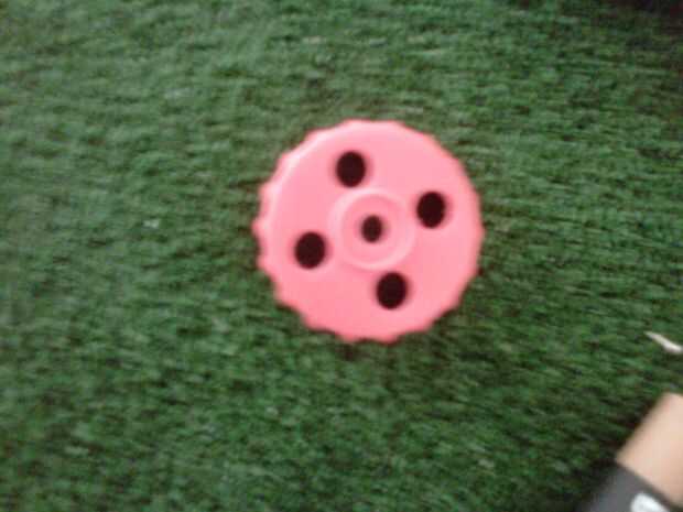 Ahora toma el papel encerado y traza un círculo en el el tamaño de la tapa y recórtalo. Una vez que el papel está en la tapa tome una pluma o algo y hacer un agujero en el papel de cera a través de la tapa para que el aire puede escapar cuando se sopla en él.