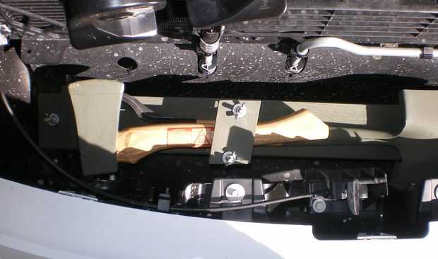 Mi carro tenía dos agujeros en lugares perfectos para montar el kit pioneer redondos de 5/8", pero no había manera llegar mi dedo dentro, coloque una tuerca en un tornillo. Resolver esto simplemente lo suficiente utilizando un par de pernos de carruaje de 4 1/2" con las cabezas cortadas. Había doblado ambos en el punto a mitad de camino aproximadamente 95 grados - un poco más plano - y lo inserta un extremo en el agujero. Cuando apretó la tuerca contra la lavadora, sujeta la placa de montaje firmemente en su lugar.