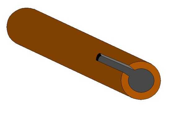 Cortar lo que queda de la tubería en dos partes iguales. Con un abrasivo sobre el mismo grosor que el hierro de ángulo hacer una ranura en el lado de uno de los extremos de cada trozo de tubo. La ranura es de 1 1/2 pulgadas de largo y es paralela a la longitud de la tubería. El gráfico no está a escala exacta.