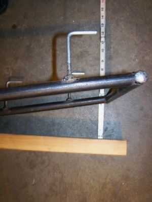 En la foto el carro rueda entera ya ha sido montado y soldado con autógena. (Hice este proyecto hace varios años.) La Junta en la foto se sujeta a la cara del ángulo de hierro que descansa contra el frente de la soldadora. Esta foto ilustra la medición para obtener el mismo ángulo de la cara del soldador antes de soldar los dos trozos de tubo. El paso siguiente mostrará la pipa soldada con autógena para el ángulo de hierro y le ayudará a aclarar algunas cosas acerca de esto.