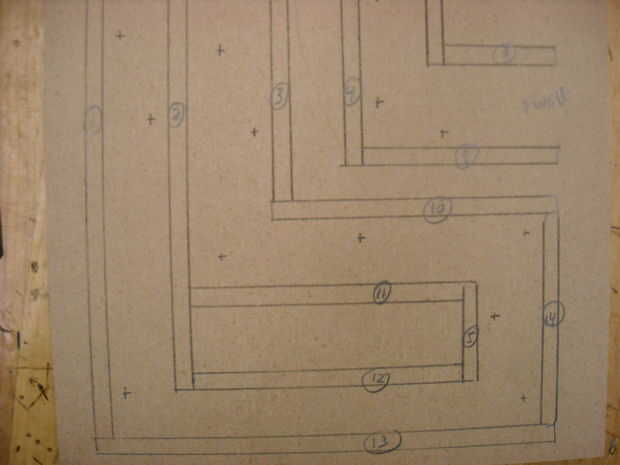 En las fotos se muestra qué hacer ahora que es para poner la madera al lado del MDF que marca todos los tamaños de la pieza de madera. Asegúrese de que todas las piezas de la etiqueta! Tuve una rotación pasada de niño que tenía 42 piezas. Resultó bien por suerte!