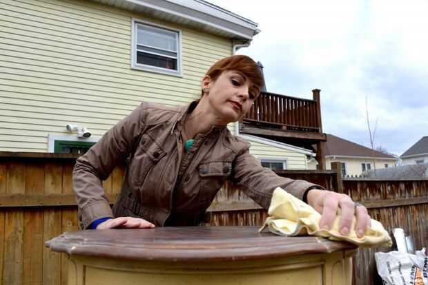 Antes de pintar la mesa, utilicé papel de lija abrir los granos de madera y acabado.