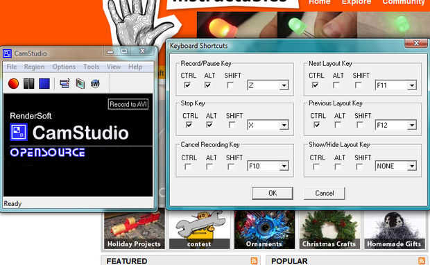 Una forma rápida para grabar lo que estás haciendo es crear métodos abreviados de teclado. Yo uso el ctrl + alt + Z para grabar. Para detener la grabación me uso ctrl + alt + x para grabar minimizar el Camstudio y simplemente pulse el atajo de teclado para grabar.