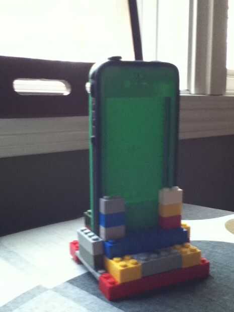 Este es mi dock cargador de iphone. Ha hecho lego de la forma como muchos otros pero este uno no utiliza pegamento y no destruir cualquier lego o los cables. La única parte de lego no es dos pequeños trozos de cinta adhesiva. Es fuerte y portátil y p