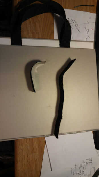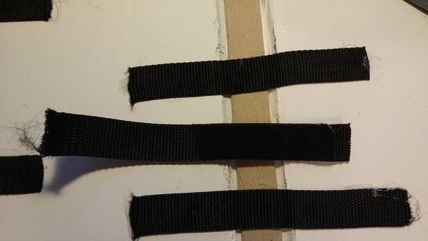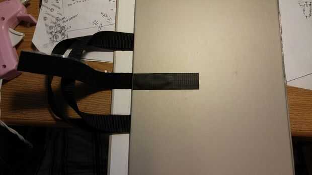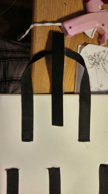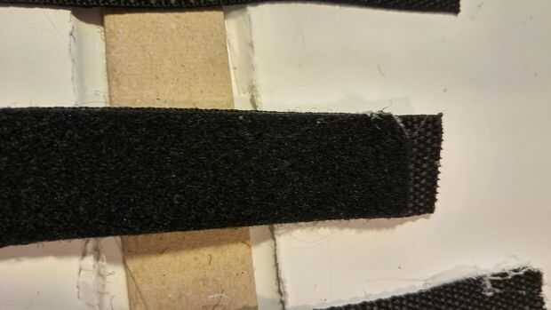 Después de que tenemos nuestras asas y correas de ajuste es hora de agregar la correa de Velcro. Tomé un pedazo de velcro y había pegado a un pedazo de la cinta de nylon extra y luego la pegué en el interior del libro. Tomé la segunda pieza del velcro y pega directamente a la parte posterior del libro.