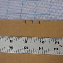 Utilizando tu regla y lápiz, hacen una luz marca en el punto medio de un lado de la cartulina (9,25 pulgadas) y luego marque un de media pulgada en ambos lados del centro.