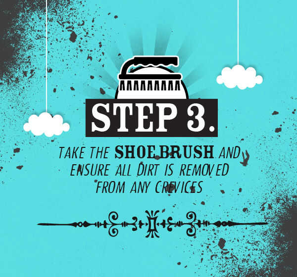 Tomar el Cepillo del zapato y asegurar que toda la suciedad se quita de cualquier grietas.