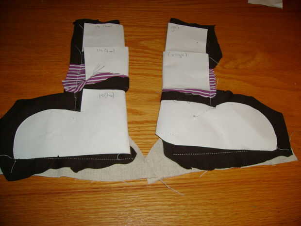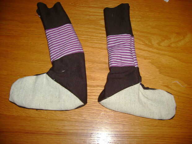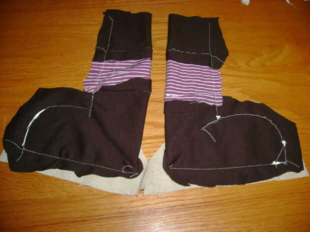 2. luego doblar en la mitad de cada pierna y coser juntos, dejando la tapa abierta.
