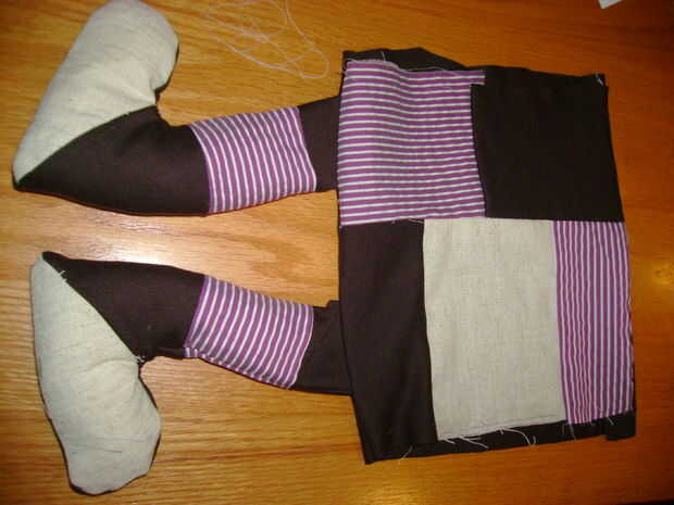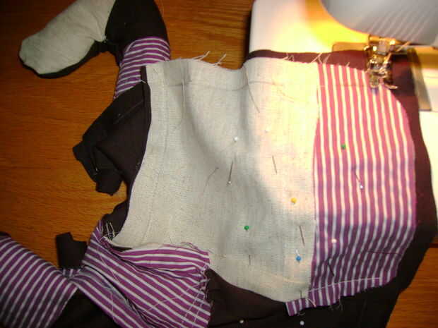 2. coser el interior de la guarnición, utilizando una pieza de tela. Pero aquí se pone un poco complicado: Asegúrese de deslizar las piernas entre la pieza modelada y el interior tela. (ver fotos)