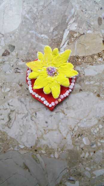 todo lo que necesitas para hacerlo es un pétalo de rosa, algunos arcilla blanca, pinturas variadas, un palillo de dientes y algunos granos de caviar. Paso 1; Su pétalo de rosa y alguna arcilla y forma su arcilla de pétalo de rosa. Paso 2; Después de haber terminado que, hace cinco pétalos grandes y tres pequeños, el patrón es cada segundo tan un pétalo grande y uno pequeño. Una vez que ha hecho llegar su pétalo de rosa en forma de arcilla y hacer pequeñas bolas blancas de arcilla y los puso alrededor de él. Paso 3; Haz tus pinturas y pintar el lirio amarillo y el pétalo de rosa roja, entonces llego su palillo rápido por la mitad y pégalos en el centro del lirio y debe pasar por el pétalo así para asegurarlo. Paso 5; obtener las perlas de caviar y esparcir en el medio como se muestra en la imagen. Esperamos que disfrute haciendo esto!