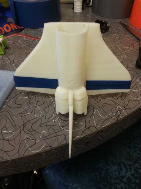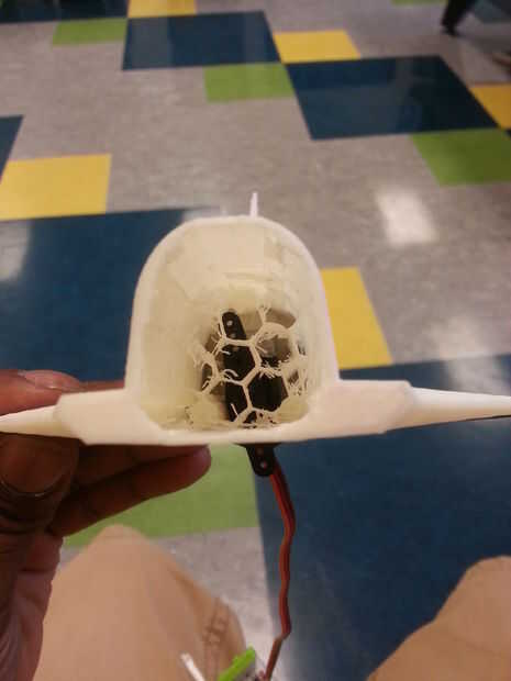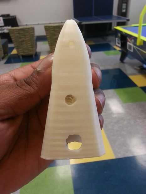Una vez que se imprimen los ShuttleOrbiterMid y ShuttleOrbiterNose, hueco la mitad superior de la impresión de medio y la parte inferior de la mitad de la impresión de la nariz con un taladro para dar cabida a la batería de 9 V. Haga dos orificios en la parte inferior de la nariz para acomodar el Cable y el largo.