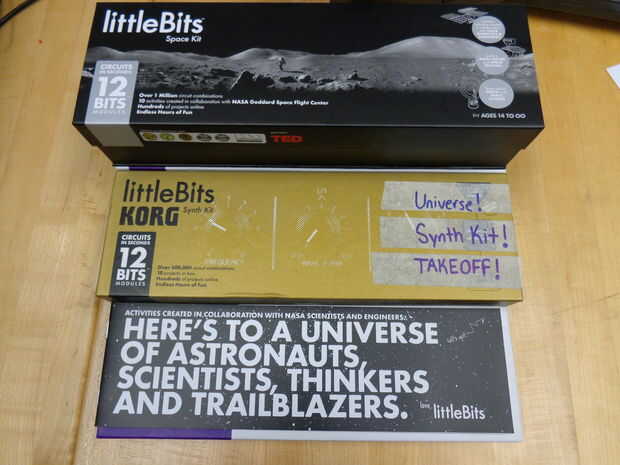 Coloque la caja del Kit espacio encima de la caja del Kit Premium y asegúrelas con cinta adhesiva. Cinta de la caja del Kit de sintetizador a la caja del Kit Premium. Cinta el caso Kit de Base para el caso del Kit de sintetizador. Las cajas deben se asemejan a una escalera.