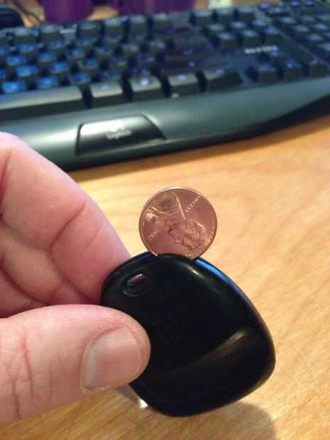 Uso el céntimo para abrir el fob. Mina tiene una ranura hecha sólo para ella. Inserte el penique y giro.