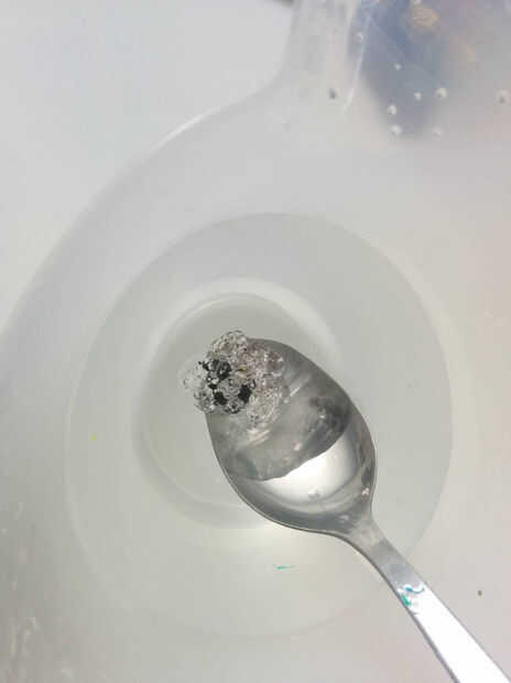 El blob de plástico alrededor se mueven con una cuchara y llevarla fuera de la agua caliente. Podría ser demasiado caliente al tacto - si es entonces esperar un tiempo, pero asegura que es aún flexible.