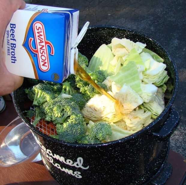 Una caja de caldo de carne se añadió a las capas de los alimentos.