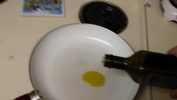 Gire el calor en una estufa grande a mediano. Poner el aceite en él y extenderlo sobre el pan entero. Añadir la carne, la pimienta y la cebolla a la sartén. (Quiero añadir tomate cada vez y un rato a veces pero yo no tenía ninguno). Saltear durante 10 minutos o hasta que se cocinen a su gusto. He usado salchicha precocinada, si se utiliza crudo, tendrá que cocer más.