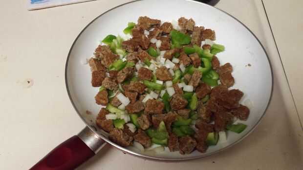 Una cosa que me gusta hacer es agregar 2 cucharadas de agua a la sartén después de 8ish minutos para cocer al vapor las verduras un poco. Esto ayuda a que el pimiento y la cebolla un poco más suave, no soy un gran fan de crujido en mis mezclas.