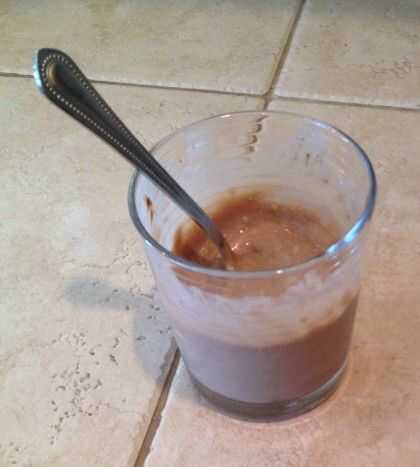Los ingredientes son: leche, polvo de Malta, jarabe de chocolate y helado de vainilla. Las herramientas son una copa de Cóctel squat y una cuchara común.