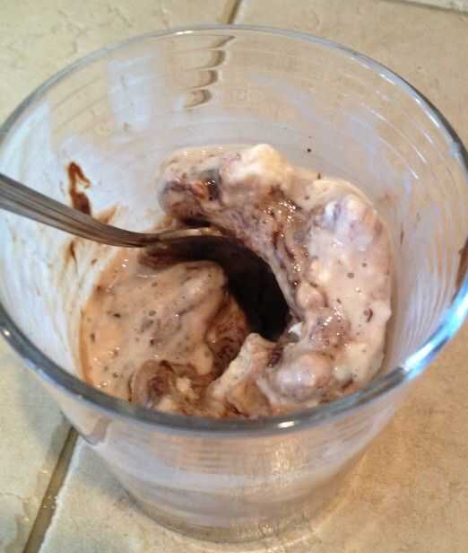Cortar los ingredientes en el helado se ablande el helado. Cuando es bastante suave, comienzan a empujar los ingredientes en el lado del vidrio, casi como se amasar papas.
