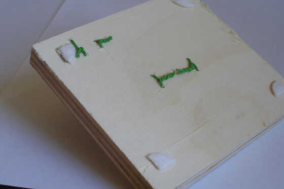 Primero necesita marcar el tablero de madera y taladrar los agujeros para evitar que las bobinas en lugar como en la imagen.