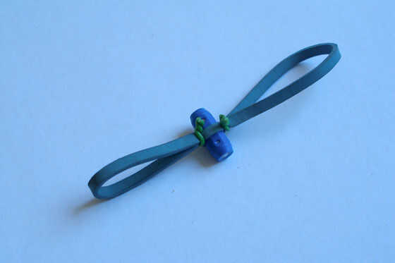 Ate el imán a una banda de caucho. Los polos norte y sur del imán se debe a lo largo de la dirección de las dos bobinas.