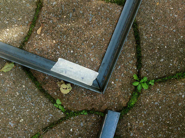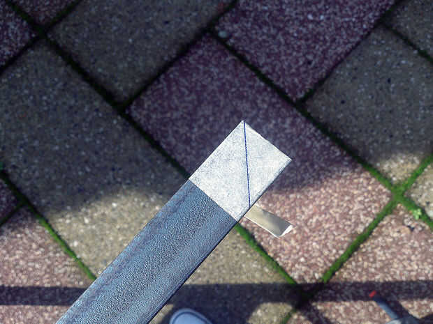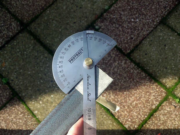 Primer diseño las 4 piezas de 30 x 30 en un rectángulo. Si el acero no se corta en ángulos, ahora es el momento para hacerlo. Tómate tu tiempo en medir los ángulos, use un transportador. Siempre mida dos veces y corte una vez. Si cortar en el ángulo equivocado, usted podría terminar tener que acortar todo, para compensar su error. Sólo puede fijar tanto con el soldador. Después de cortar los ángulos, hacer un ajuste de prueba. ¿Concuerda? ¿Sí? ¿No hay brechas evidentes? No. Impresionante! Un pequeño truco usar cuando se utiliza un soldador del palillo moler un pequeño borde en ángulo de los materiales a soldar. En hacer que consigues un 'camino' puede arrastrar la barra de soldadura en.