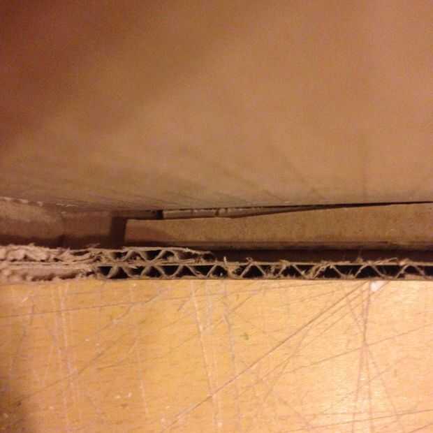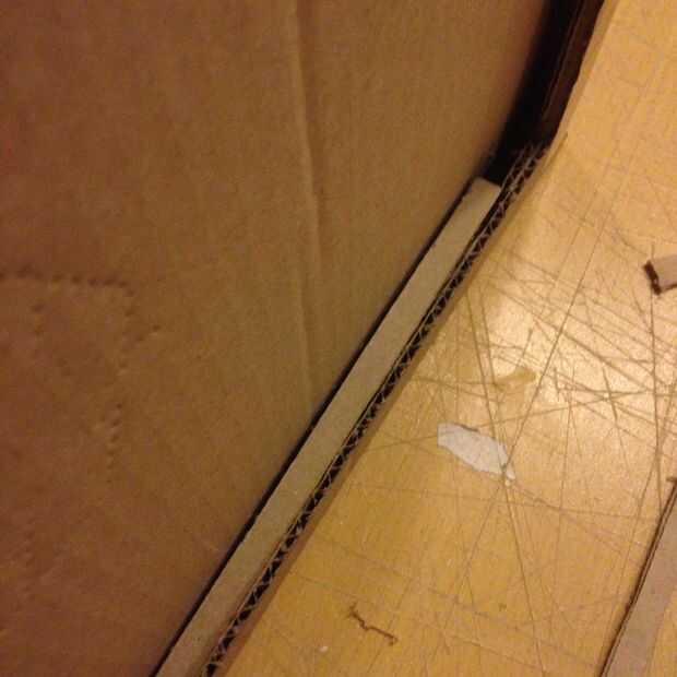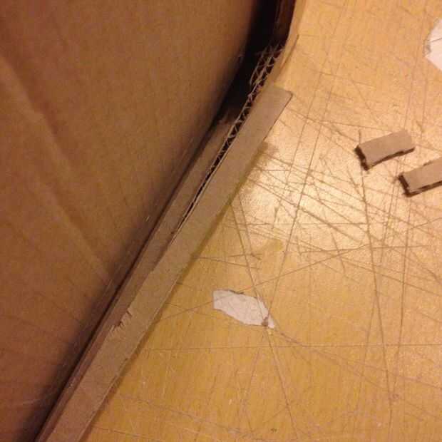 Porque la manga de registro no sería colocarse totalmente abajo, colocamos dos trozos de cartón en la ranura. La anchura es aproximadamente de un centímetro, así que he cortado dos tiras pequeñas (9mm) de la Plaza obtenida en el paso anterior y poner plana en la parte inferior. Ya hay algún resultado! ¿Y es hora de jugar al otro lado del disco, no?