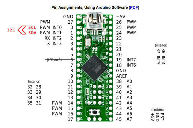 Los pernos de I2C (SDA, SCL) son lo que utilizamos para permitir la comunicación módulo -> módulo . Cuando -> el módulo de comunicación de módulo se habilita estos dos pines ya no pueden ser utilizados por un codificador rotatorio.