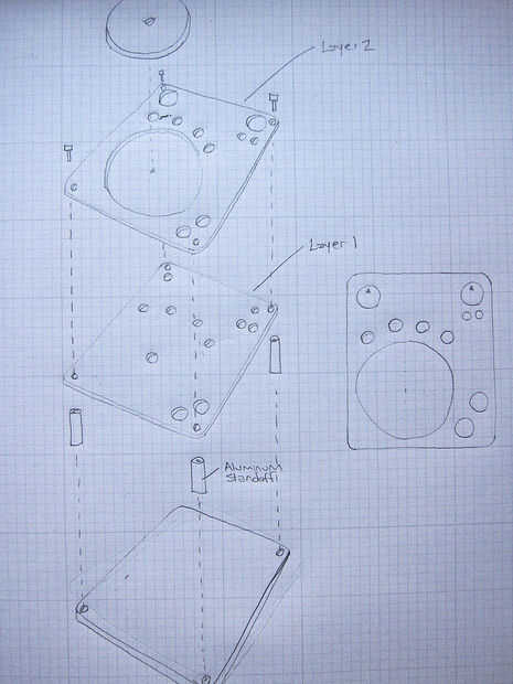 En el diagrama anterior, verá el bosquejo de mi diseño de tres capas. Este método de diseño permite componentes estar hundido en. A continuación es la descomposición de las capas para las cubiertas y el sampler.
