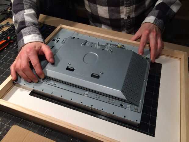 Medir con precisión la distancia entre los bordes de la pantalla y la parte interior de la estructura tanto vertical como horizontalmente. Las distancias se dividen por dos, estas son las anchuras de los bloques de espacio para arriba/abajo y derecha/izquierda. También medir la profundidad de la pantalla. Esto determinará el espesor de la madera contrachapada. Tuvimos la suerte de que la altura era 3/4 '', así que hemos utilizado madera contrachapada de 3/4 estándar ''.
