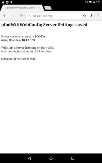Al hacer clic en el botón Configurar, el escudo de WiFi procesar los resultados y almacenar en la EEPROM y luego mostrar una página de respuesta, como el arriba, indicándole al ciclo de poder conectarse a su red.