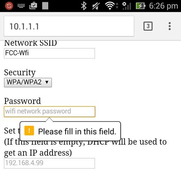 El escudo de WiFi rellena automáticamente el SSID de la red con la red local con la mejor fuerza de señal. Que generalmente será el que quieras. Si no simplemente sobrescribir ese ingreso. Debe especificar un SSID de la red y contraseña y portNo. El campo de dirección IP es opcional. Si deja en blanco, el escudo de WiFi usará DHCP para obtener su dirección IP de tu red local. A menudo es más fácil especificar una dirección IP específica para que pueda conectar fácilmente a este escudo.