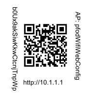 En este modo de configuración del módulo de ESP8266 establece un punto de acceso seguro con el nombre pfodWifiWebConfig. Este punto de acceso aparecerá en tu móvil y tu ordenador. Para conectarse a este punto de acceso necesita introducir la contraseña única para su escudo. Puede escribir la contraseña en mano pero es más fácil y más confiable para escanear el código QR que previamente conectado a tu escudo, usando una aplicación de escáner QR, como QR Droid Private