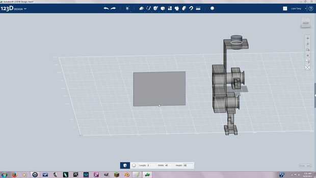 Crear un cubo longitud: 2 ancho: 45Height:20 y encaje en la cara superior del cilindro en el soporte.