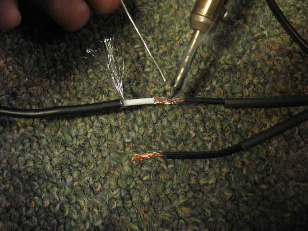 Sueldan la alambres en línea, un poco torcida juntos. Observe un cable es un poco más a coincidir con el otro.