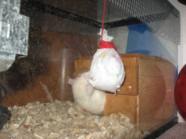 Divertido juguete para tu ratlets :)Paso 1: Escoger un regalo - rata yogies fueron una de las favoritas de mi niño pequeño, pero funciona cualquier cosita. Mantiene las ratas ocupado ya que las cosas no-pegajoso y un poco de mantequilla de maní es es
