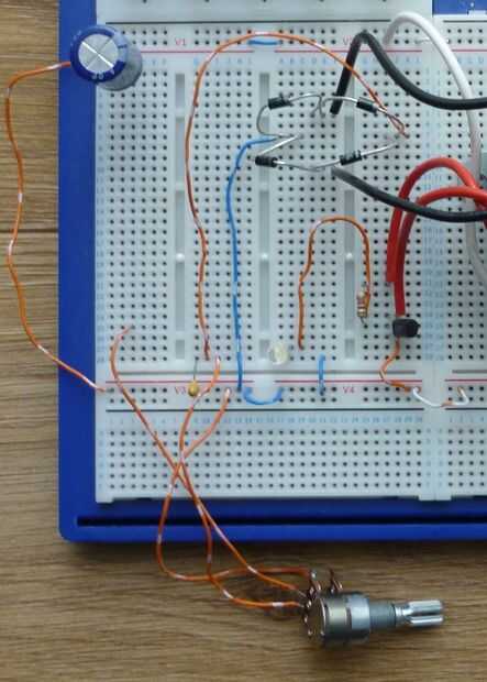 No ser tentado hacer el circuito sin el potenciómetro porque como se indicó anteriormente, la tensión puede levantarse suficientemente para destruir el condensador electrolítico.