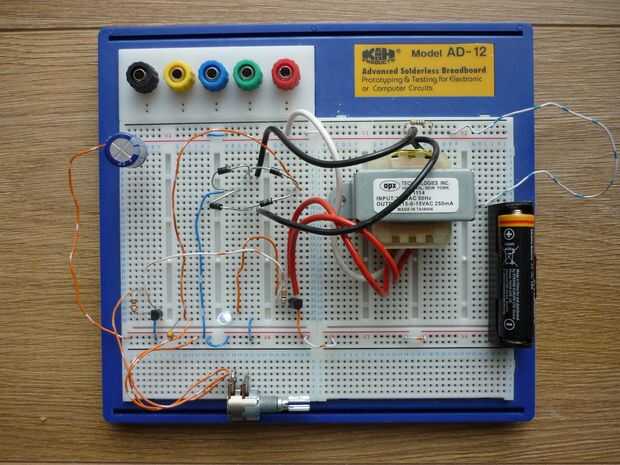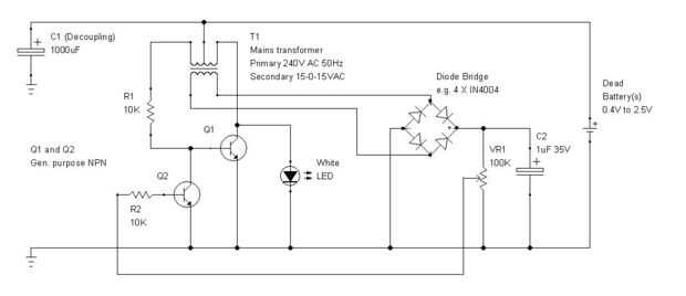 Se añade un segundo transistor de uso general NPN Q2 con el colector conectado a la base de Q1, el emisor a tierra y la base para el limpiaparabrisas del potenciómetro a través del resistor de 10K R2. Las funciones del circuito de alimentación de voltaje positivo de nuevo desde el puente rectificador a Q2 que se activa reduciendo así la amplitud del oscilador. La Unión base/emisor tiene un umbral de aproximadamente la mitad de un voltio y Q2 no conduce hasta que se supera este umbral nos da una forma muy cruda de control que es adecuada para nuestro propósito. Un diodo Zener daría una función nítida pero el circuito tiene que generar suficiente voltaje para que sea conducta, dicho esto, los diodos Zener están disponibles hasta 1,8 voltios o así y vale la pena experimentar con.