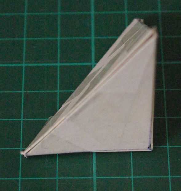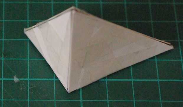 4. pegar los lados correspondientes de los triángulos junto con cinta adhesiva transparente para formar el tetraedro.