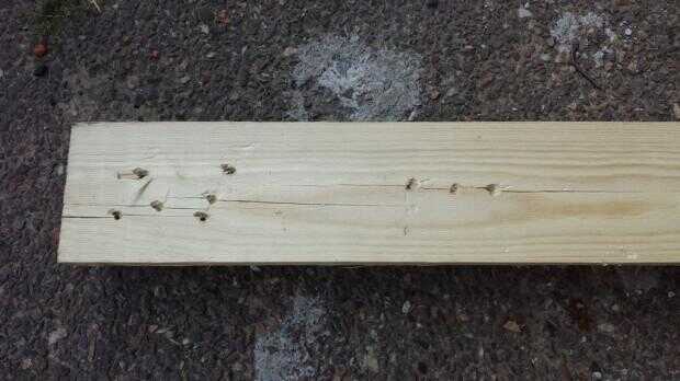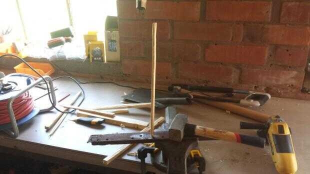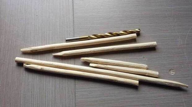Primero utiliza un cuchillo de manualidades para pre forma la madera y hace una punta afilada en un extremo. Esto hará más fácil a martillo a través del primer agujero grande (10mm).