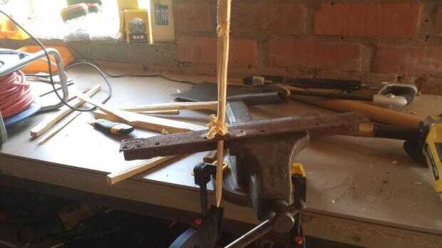 Hay muchas técnicas para hacer tacos, pero lo más fácil es para una pieza de madera a través de un agujero. He perforado dos agujeros en un trozo de hierro en forma de L y había fijada en mi tornillo de banco.