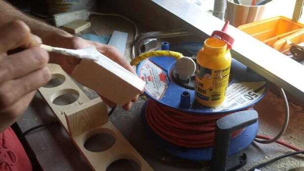 Primero aplicar una buena cantidad de pegamento en las uniones y alineados (en vista) en el tablero superior.