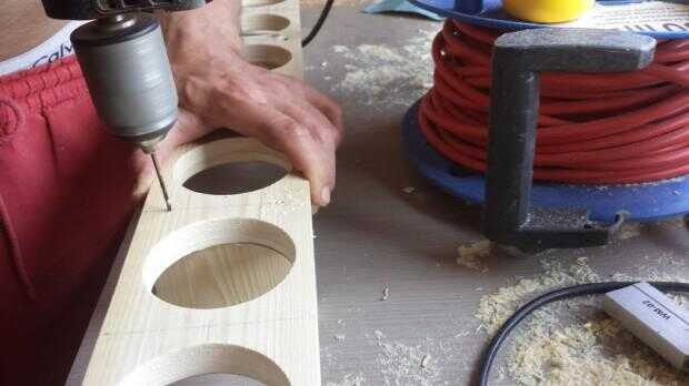 Utilicé las líneas divisorias como guía para perforar agujeros de 15mm de ambos extremos.