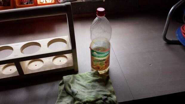 Después de lijar apliqué una capa de aceite de cacahuete (robado de la cocina) con un trozo de tela.