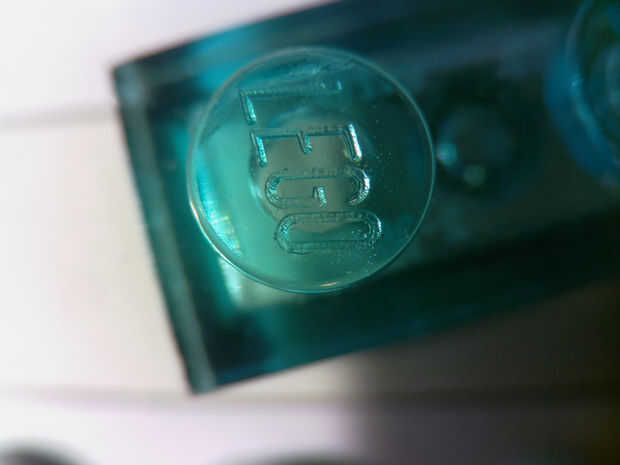 -el logo LEGO en ladrillos. Las dos imágenes son una comparación con las lentes de las cámaras WaveShare B y F (6 mm vs 3,8 mm enfoque de longitud) en la misma cámara de B, a la misma distancia de la cámara al objeto. Para obtener la misma magnificación con el lente de "F", usted tiene que acercarse mucho al objeto.