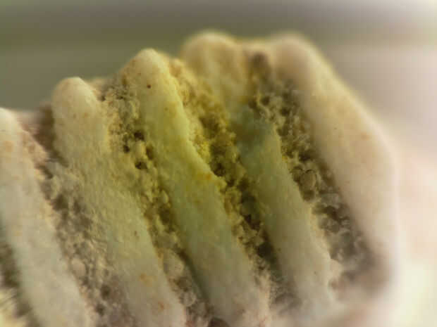 Se puede ver un amarillo punto de color en el centro de la mayoría de las imágenes y una zona de violeta en el exterior.
