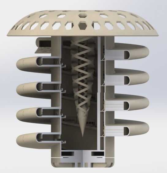 2. la parte del 'sacacorchos' se compone de módulos (cada uno contiene módulos de habitación o viviendas como nos gusta llamarlo, por ejemplo). Estos módulos se agregan como el edificio madrigueras más profundas, aumentando la capacidad del edificio en el tiempo.