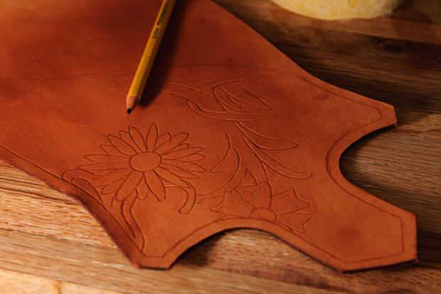 Prefiero este método, parcialmente porque soy perezoso, y parcialmente porque me gusta hacer como ir. Generalmente yo a dibujar un boceto, decidir lo que me gusta y no gusta de él y luego con una versión modificada en el cuero. En este caso, tengo la piel un poco húmeda por lo que sería una abolladura donde dibujé.