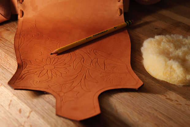 * Mojar el cuero con una esponja en ambos lados, o ejecutarlo rápidamente bajo el grifo. No la consigo mojado mojado, como con charcos, ya va empezar a fofo. Pero usted puede poner un poco de agua en allí.